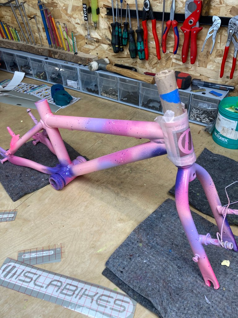 As soon as I started my business I knew I wanted to offer more than just simple bicycle repair services. I have spent many years honing my craft and love restoring a bike from tired to as good as the day it was bought. The satisfaction of bringing someone’s vision to life had still eluded me until my first few forays into custom paint. It’s great to build a new bike using all the latest and greatest parts, but nothing beats a bespoke, one off paint scheme, it’s a truly unique expression and impossible to replicate.